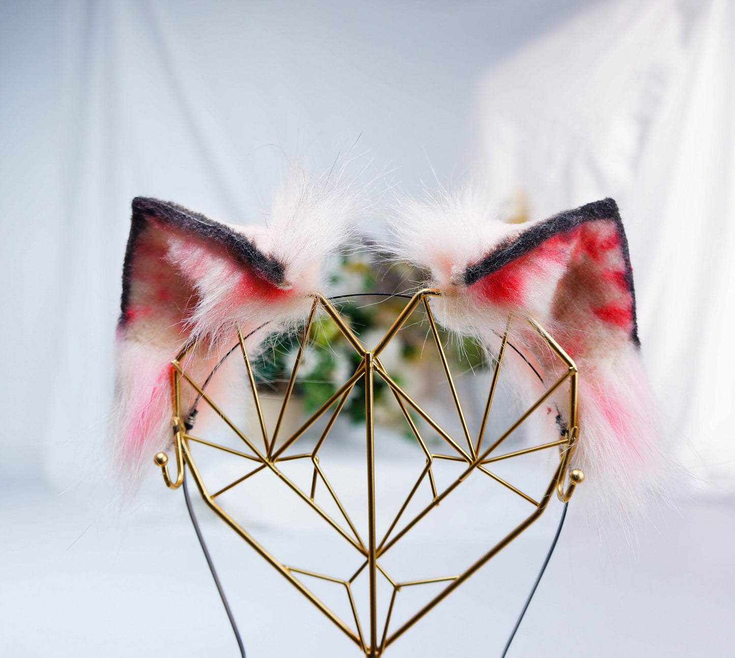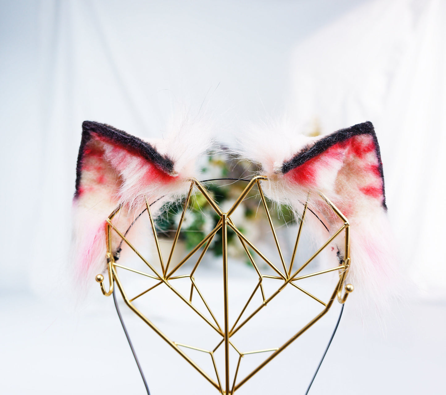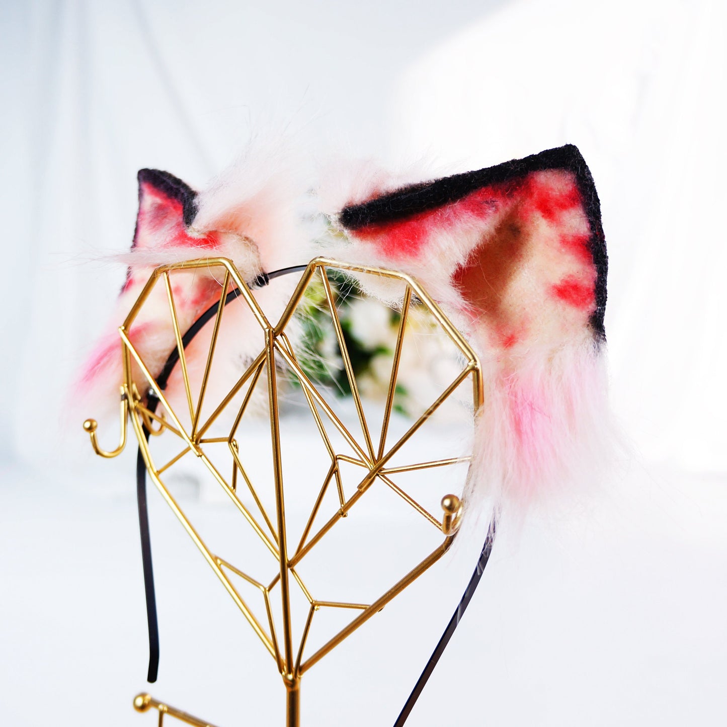 rotten strawberry cat Ear Cat ears Kawaii rose and pink cat ears cosplay faux fur neko ears mimi kawaii cosplay ears kitten gear pink cat